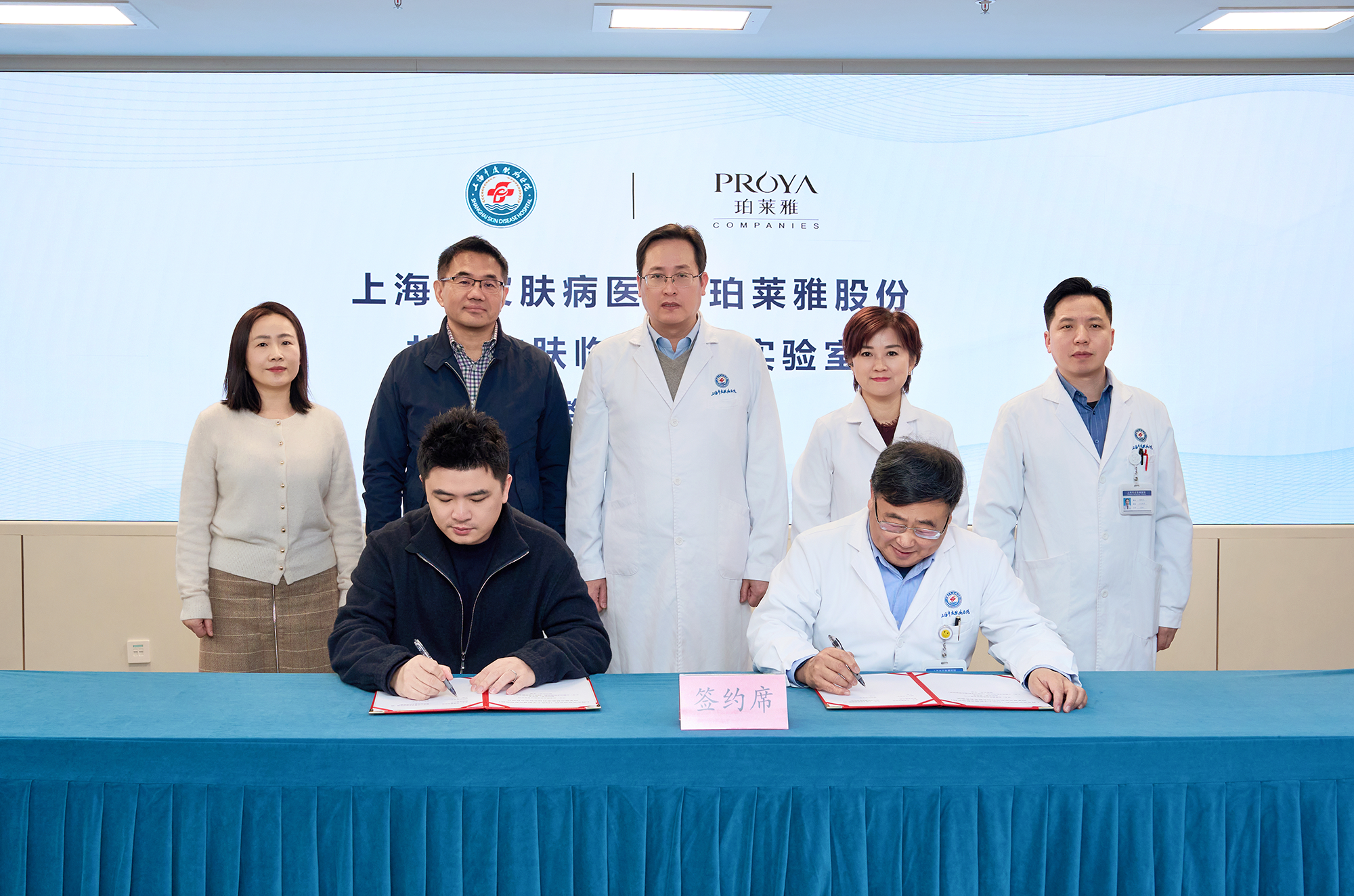 Hou Yameng, General Manager of Proya Co., Ltd., and Li Bin, President of Shanghai Skin Disease Hospital, signed the cooperation agreement and jointly inaugurated the laboratory. Enterprise representatives including Sun Peiwen, Chief R&D and Innovation Officer of Proya, and Chang Xiaowei, Director of Proya Shanghai R&D Center, as well as hospital leaders including Chen Zhongjian, Shi Yuling and Zhang Guolong, Vice Presidents of Shanghai Skin Disease Hospital, attended the event.